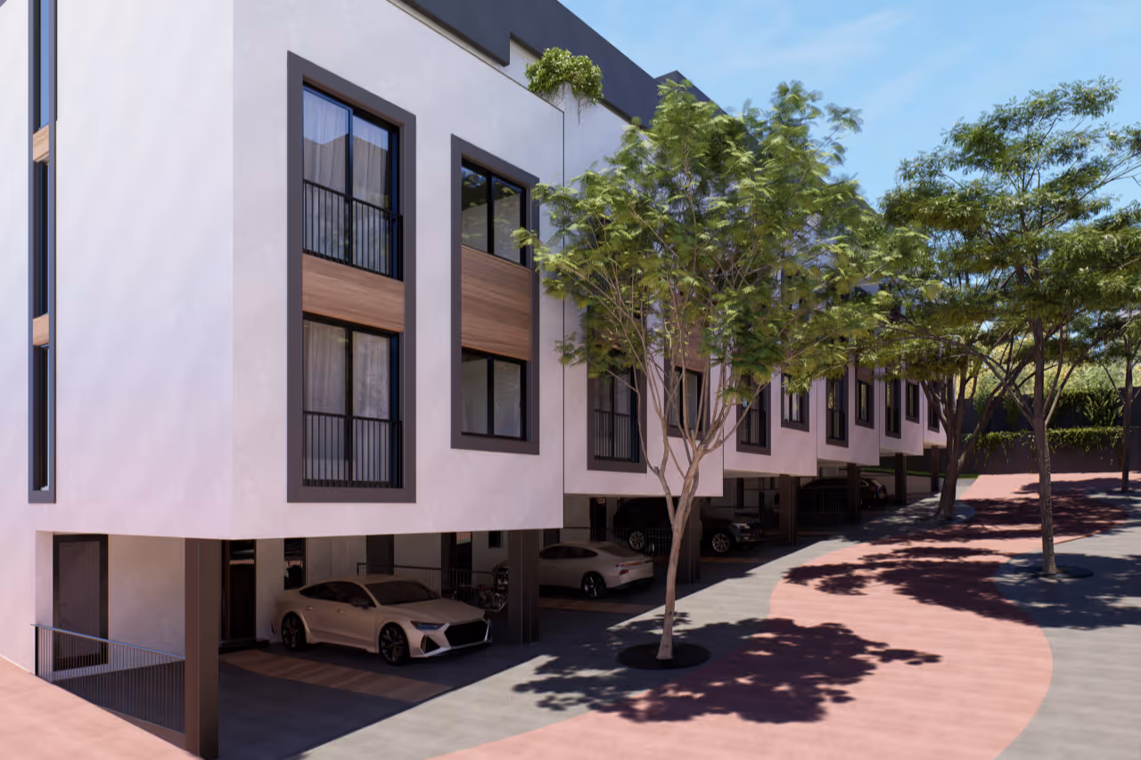 Cada casa também inclui duas sacadas e um jardim, totalizando até 260 m² de área privada.